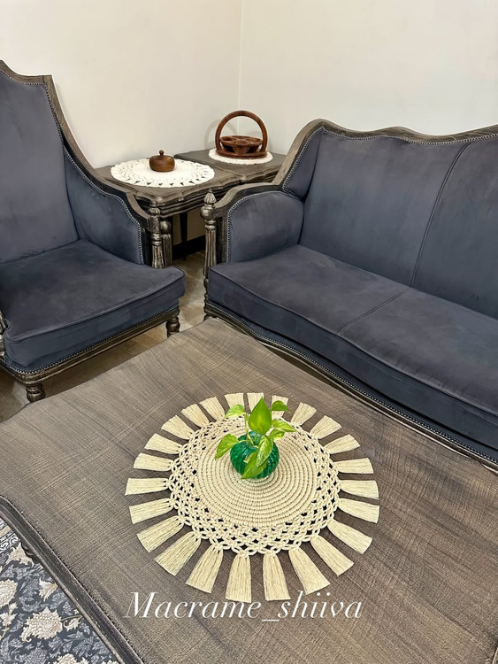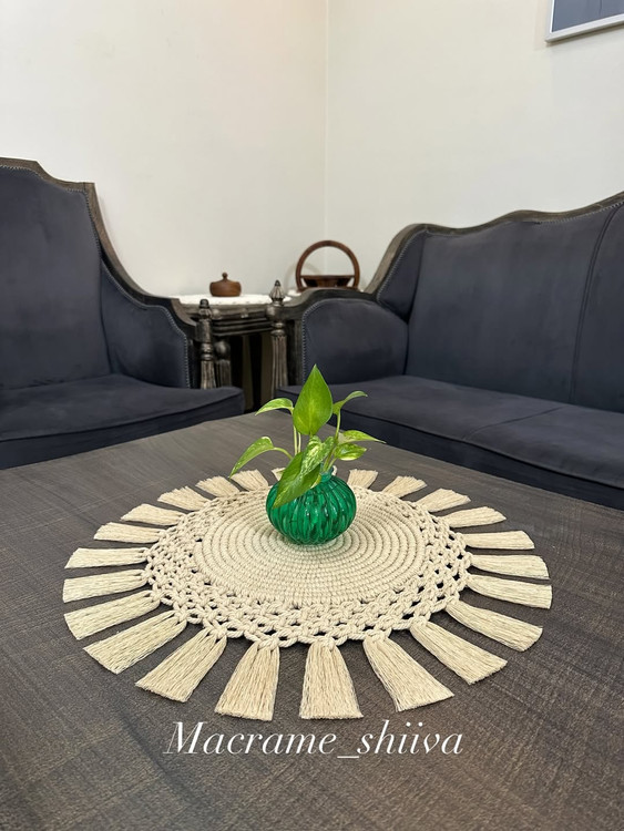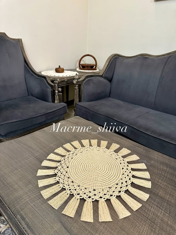 رومیزی گرد مکرومه کرم