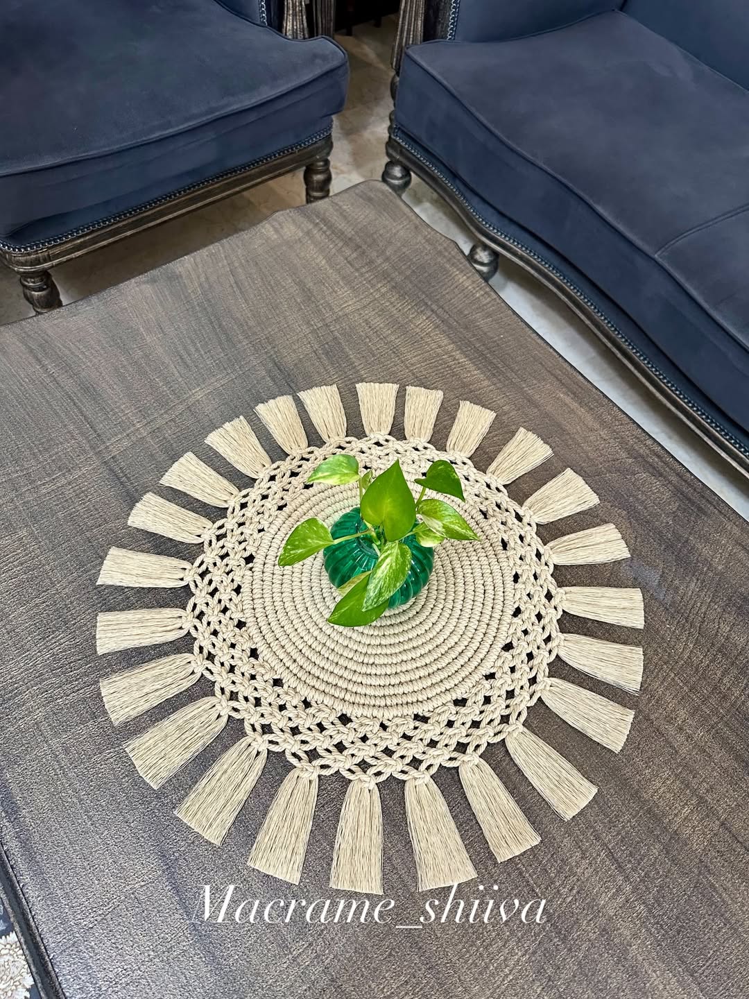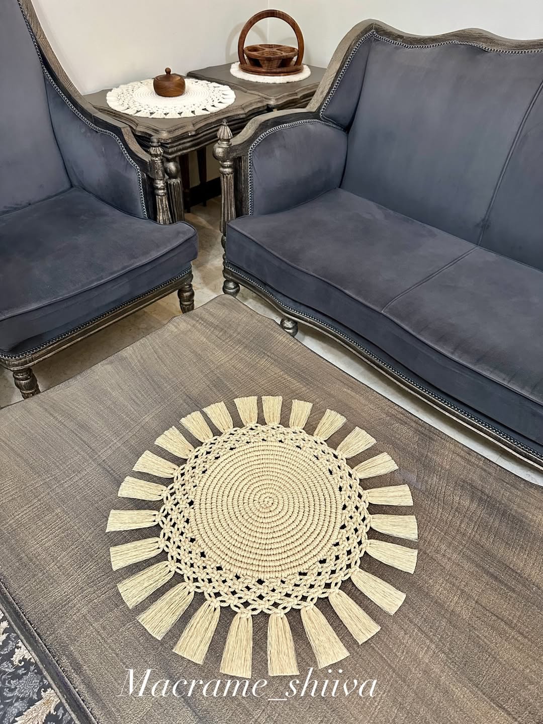 رومیزی گرد مکرومه کرم